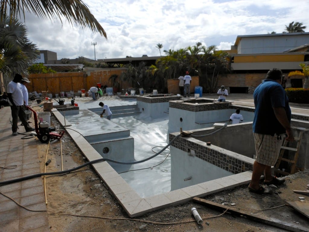 Back in November I flew down to Aruba with Don Pugh, Caribbean Territory Sales Manager for CL Industries to consult on a new plaster job for Willy’s Pools. Willy de Cuba, owner of Willy’s Pools used Diamond Brite to finish his pools for years, but decided to give CL Industries Sunstone product a try. Realizing he needed some assistance to apply the new product he contacted CL Industries and they recommended using Tempool to consult.