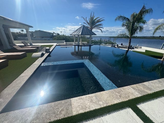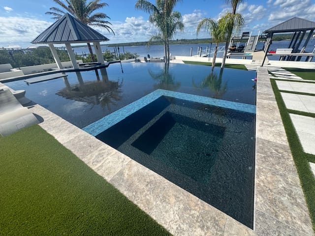SLATE ELEMENT™ brings architectural sophistication to pool interiors. Its pigmented cement base combined with slate aggregates creates depth, contrast, and a distinct surface character that turns a pool into a true visual centerpiece. The dimensional surface profile enhances how light interacts with the water, giving your pool a dynamic, high-end appearance that is both durable and visually stunning.