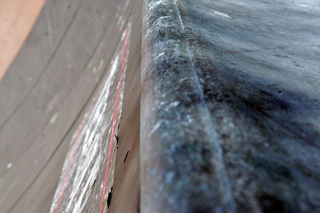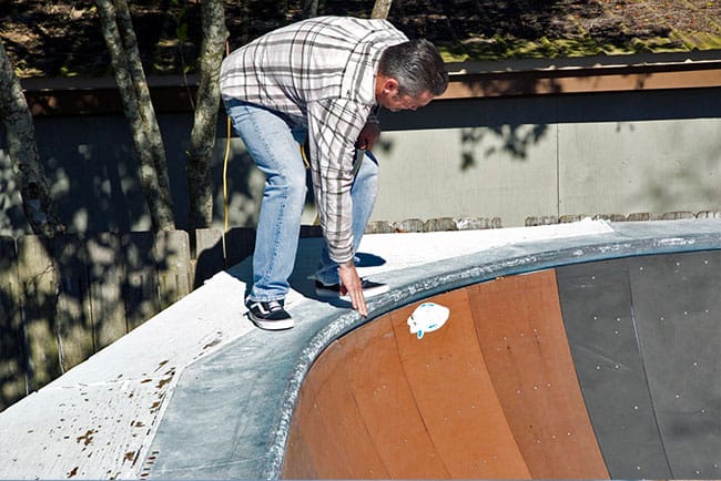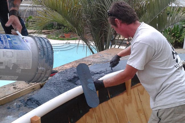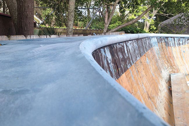Many of the guys on our team grew up skateboarding and several of them are still avid weekend warriors. When we first heard the news that our friend Tim was going to be building a new bowl in his backyard, my wheels began turning. Right away, I thought of testing one of our products to serve as an alternative to concrete pool coping. In a skateboard bowl, the coping is one of the most important and heavily abused features. The skater utilizes the coping to swiftly grind and slide his/her board and trucks. With concrete (standard) pool coping, the concrete quickly chips away and requires heavy doses of clear coat spray to provide the slickness needed to properly grind. For Tim’s project we wanted to try something that was naturally smooth and slick enough to grind, but also have the durability to hold up against long term use.