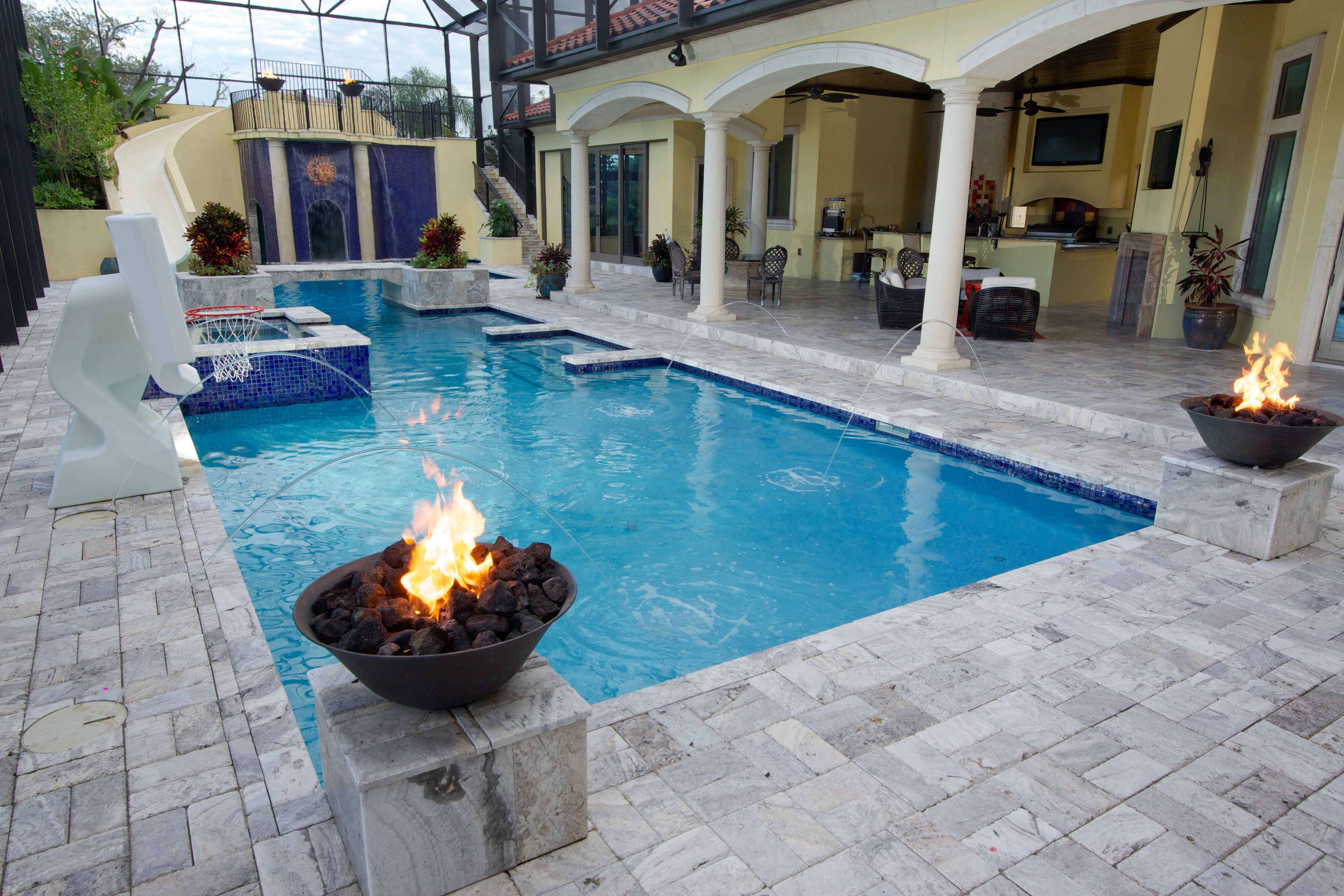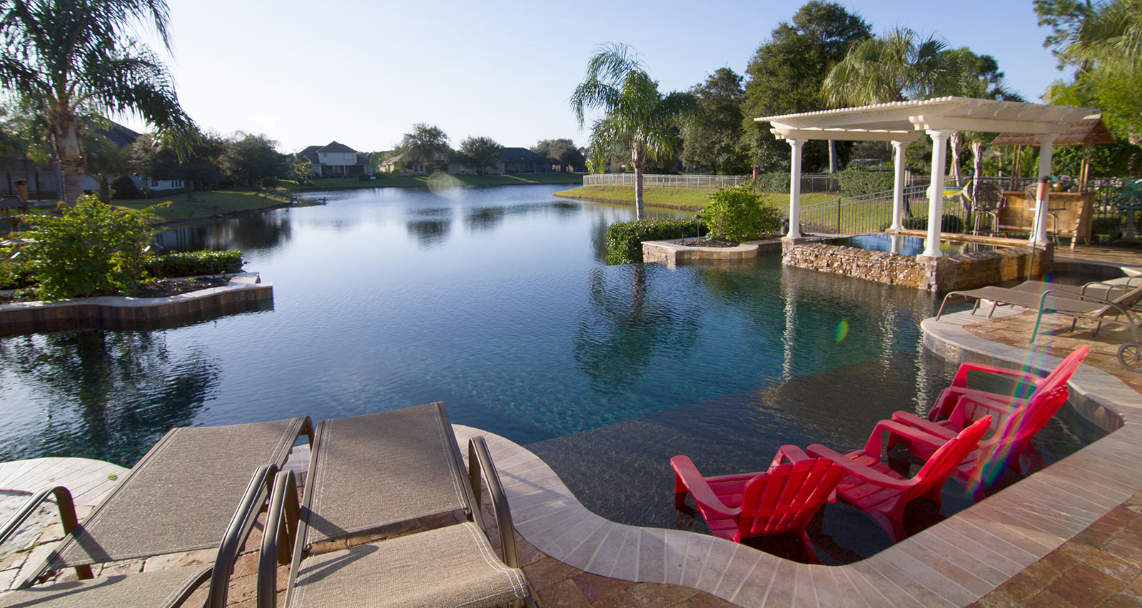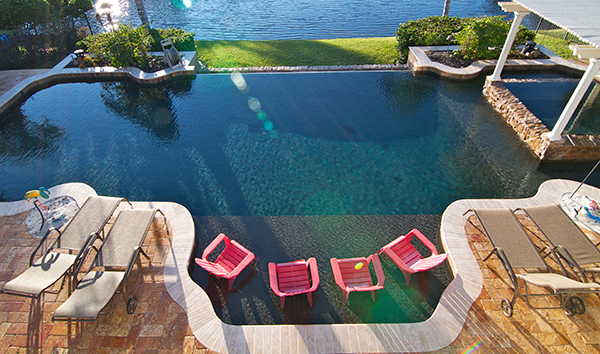 Your pool and the reflection of your landscaping provide opportunities to bring more color out of your pool water.